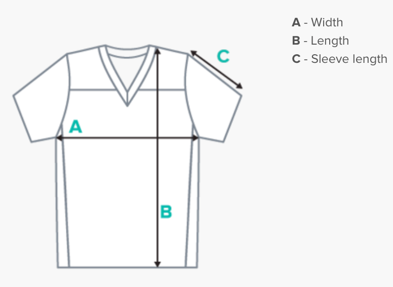| Size | Width (A) | Length (B) | Sleeve Length (C) |
